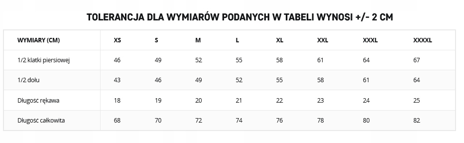 Jeżeli Twoje wymiary wypadną pomiędzy dwoma rozmiarami wybierz rozmiar mniejszy jeżeli wolisz bardziej przylegającą odzież lub większy jeżeli wolisz luźniejszą.