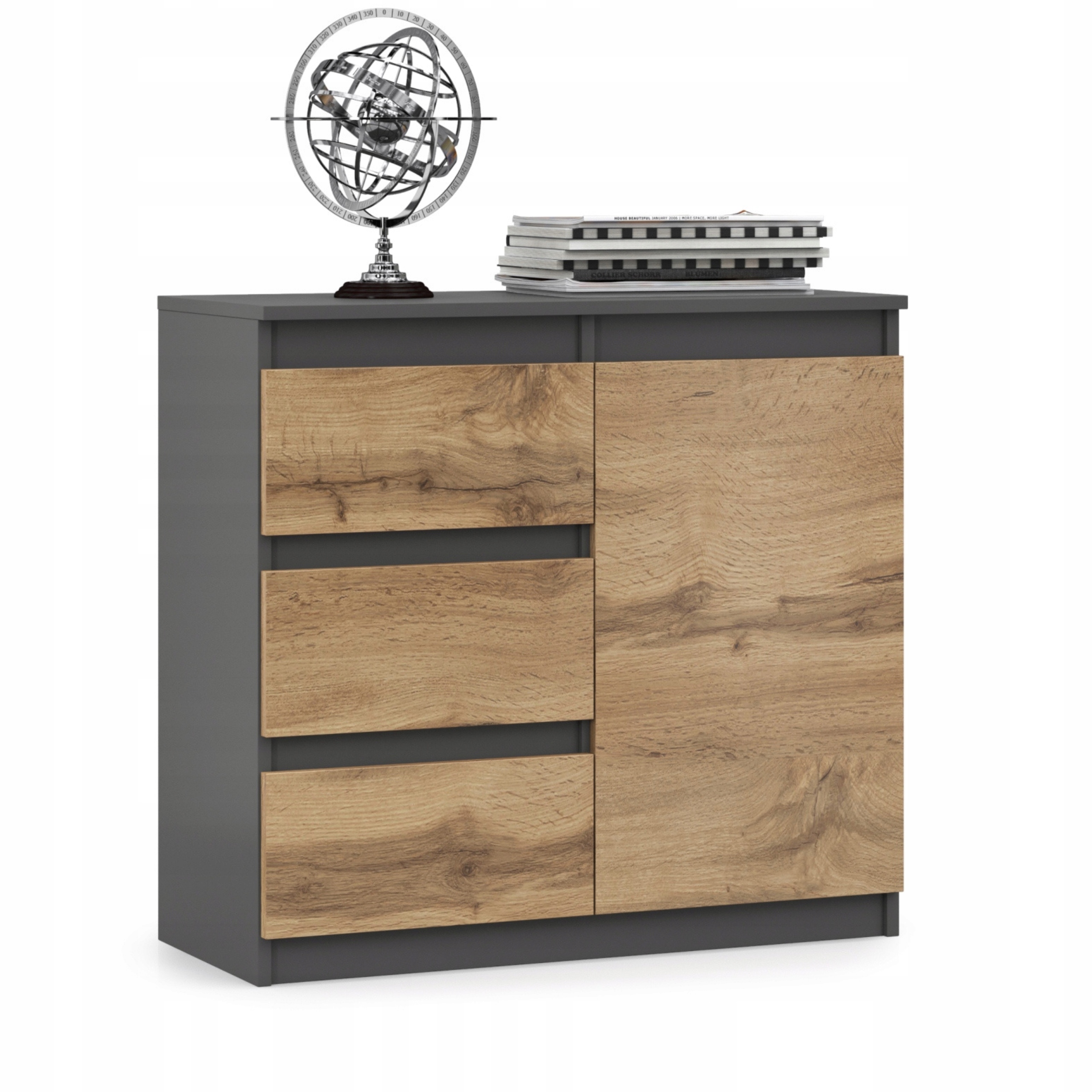 * Aukcja dotyczy komody z korpusem grafitowym oraz frontami dąb wotan. Zdjęcia innego koloru są zdjęciami poglądowymi.