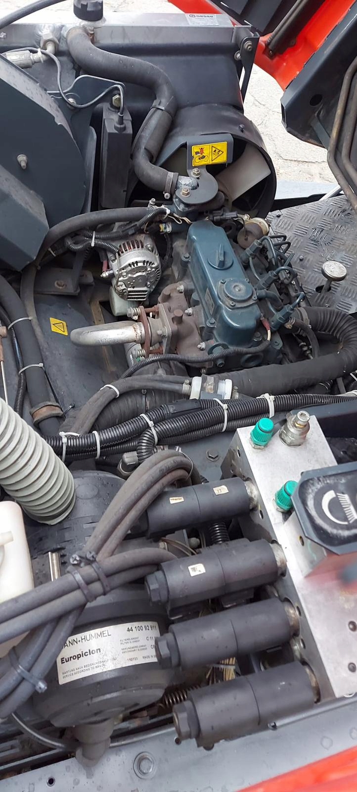 Silnik diesel KUBOTA 3 cylindry, hydraulicznie opróżniany kosz, profesjonalny system otrząsania filtrów, ogrzewana kabina.