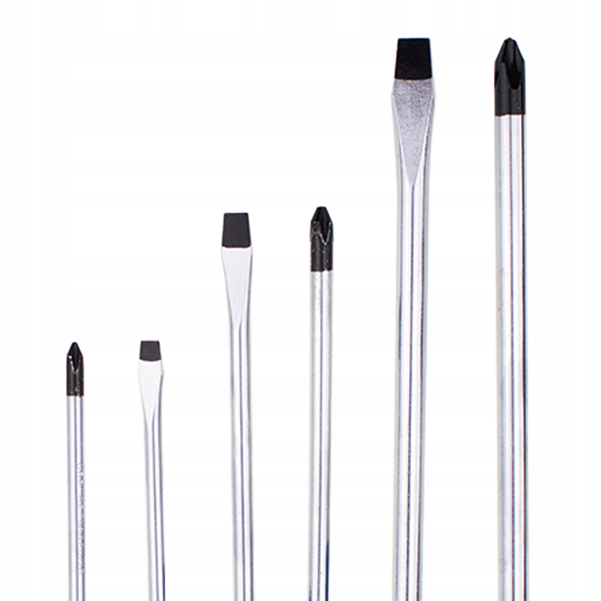 W zestawie aż 6 śrubokrętów o różnych rozmiarach. Idealne do przydomowego warsztatu, garażu, prac motoryzacyjnych.