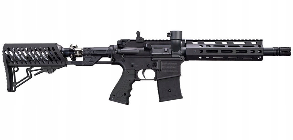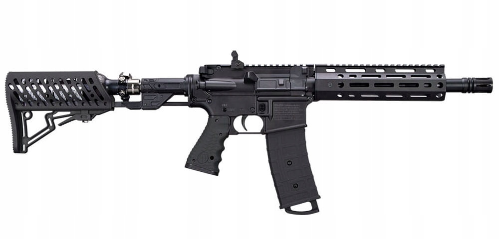 - Tippmann TMC - магфедовый полуавтоматический автомат в военном стиле, по образцу М4; оснащен система DLS /dual load system/, позволяющая осуществлять альтернативную традиционную предварительную загрузку с погрузчика или также из Нижнего магазина, вмещающего 19 пуль /не подходит для First Strike/; система безрукавный, конструкция с использованием решений родом из Типпмана 98 и Кронуса с болтом in-line; монтажные рельсы Пикатинни, регулируемые прицелы, 5-ступенчатая регулировка приклад, ствол 12” с резьбой T98, держатель для крепления ремня, разборный feedport
