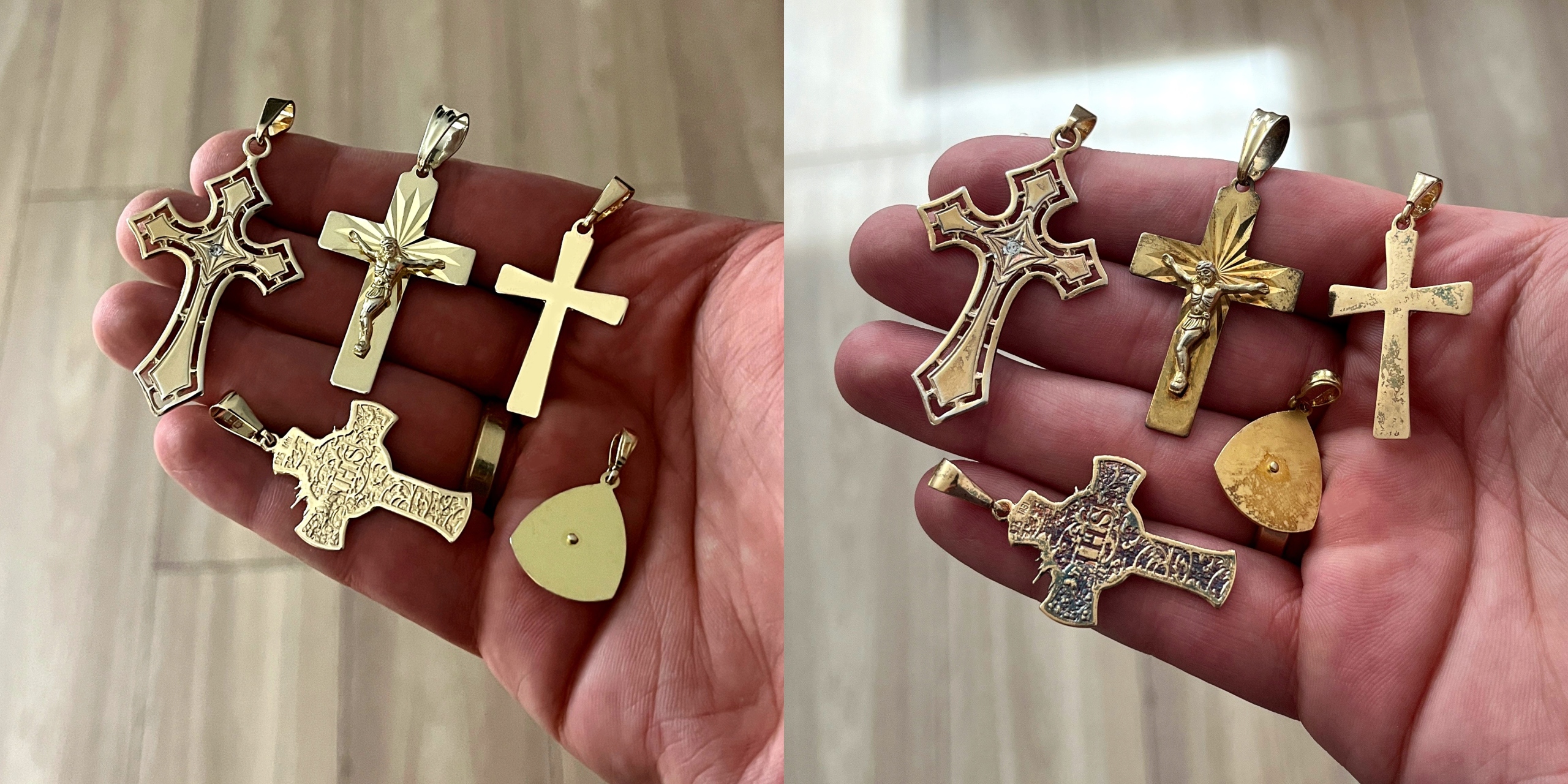 Никогда не используйте одну ванну для золотых украшений и серебряной.
