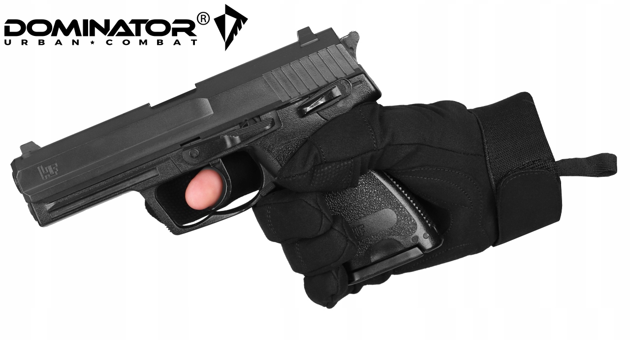 UWAGA! Przedmiotem oferty są Rękawiczki Taktyczne marki Dominator UC w kolorze Czarnym. Pozostałe elementy służą wizualizacji funkcjonalności.
