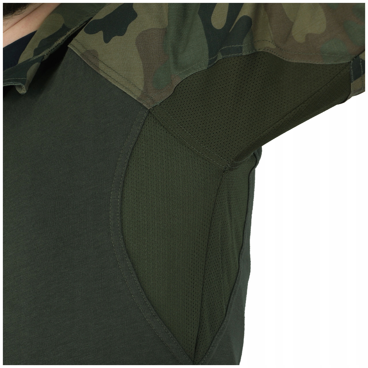 Stójka, barki oraz rękawy uszyto z materiału łączącego poliester (56%) z bawełną (44%). Materiał wykonano w technologii Rip-Stop, dzięki której zaplot z wykorzystaniem dodatkowych włókien (charakterystyczna kratka) gwarantuje wytrzymałość i zwiększoną odporność na rozdarcia i przetarcia.