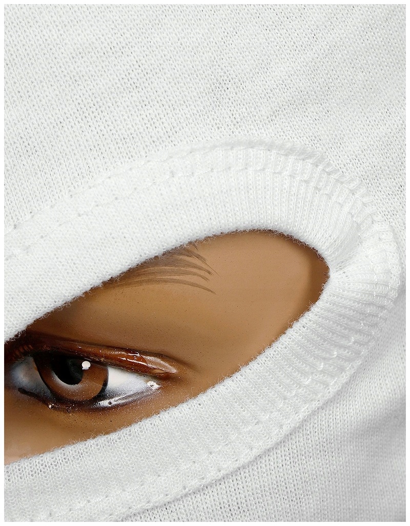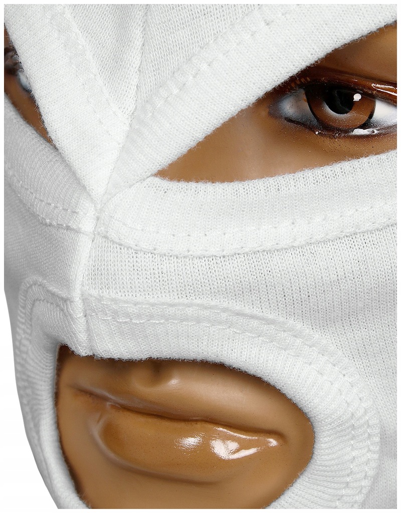 Kominiarka w kolorze białym. Wykonana w 100% z bawełny. Posiada trzy otwory: na oczy i usta.