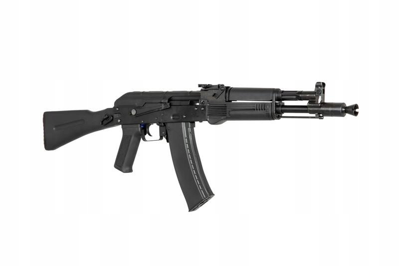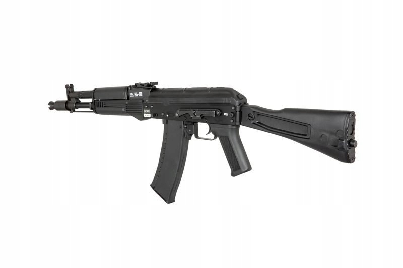 Replika karabinka szturmowego Specna Arms z serii J czerpie inspirację z powszechnie znanych rozwiązań Kałasznikowa. Tworzywo sztuczne, metal i stal to materiały, z których wykonano replikę. Stal użyto w produkcji korpusu, pokrywy komory zamkowej, zewnętrznej lufy, osłony spustu, zatrzasku magazynka, skrzydełka selektora, rury gazowej, urządzenia wylotowego, szczerbinki, wycioru, a także pinów i nitów. Metalem wykonano pozostałe komponenty. W odniesieniu do oryginalnej wersji, tworzywo sztuczne wykorzystano do stworzenia kolby, chwytu pistoletowego oraz magazynka.