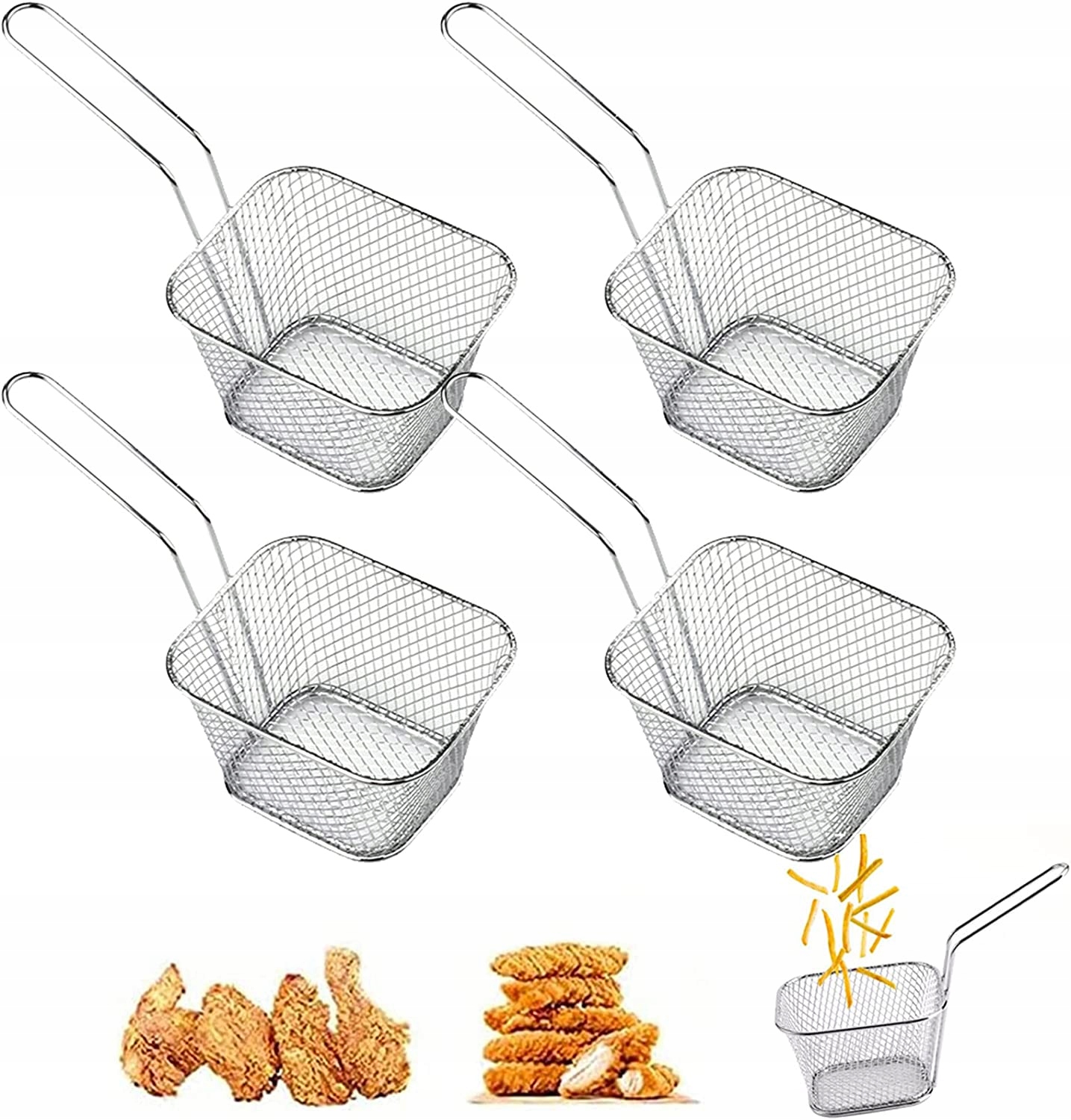 Koszyk do serwowania przekąsek lub dodatków do dań, wykonany ze stali nierdzewnej. Frytki podawane w stylowym koszyczku, wyglądają ciekawie jak by były w nim smażone podawane w restauracjach. Idealny do smażenia oraz serwowania gotowych chipsów, warzyw, przekąsek. Przystosowany do kontaktu z żywnością.