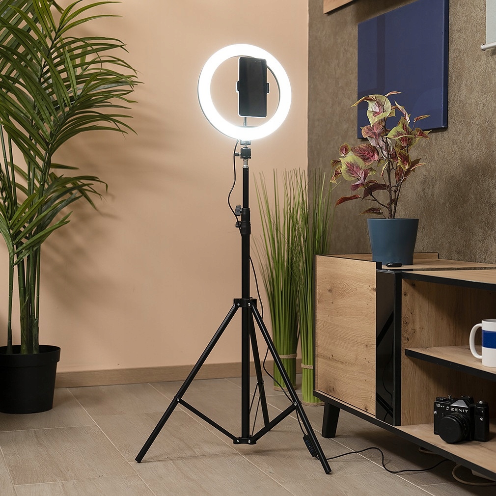Świetnym zastosowaniem dla dostosowania barwy i natężenia oświetlenia lampy jest dwupłaszczyznowa korekta niepożądanej charakterystyki lub niedoboru oświetlenia naturalnego na planie fotograficznym. Lampa pierścieniowa LED znakomicie poradzi sobie z wydobyciem szczegółowości i naturalnego wyglądu twarzy. Lampa zagwarantuje bardzo dobrą jakość fotografii produktów, zdjęć portretowych, selfie i wiele innych, a elementy na zdjęciu będą równomiernie oświetlone.
