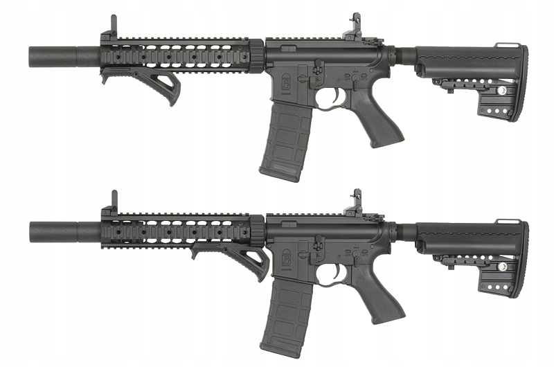 Ergonomiczny i nowoczesny chwyt wykonany z tworzywa sztucznego, przystosowany jest do montowania na szynie RIS 22 mm. Chwyt jest rozwiązaniem zastępującym klasyczną, pionowo montowaną rączkę. Ułożenie dłoni jakie wymusza na użytkowniku jej kształt, powoduje automatyczne ułożenie kciuka wzdłuż chwytu przedniego, stwarzając tym samym stabilny, wygodny chwyt repliki zarówno przy celowaniu jak i szybkiej zmianie celu.