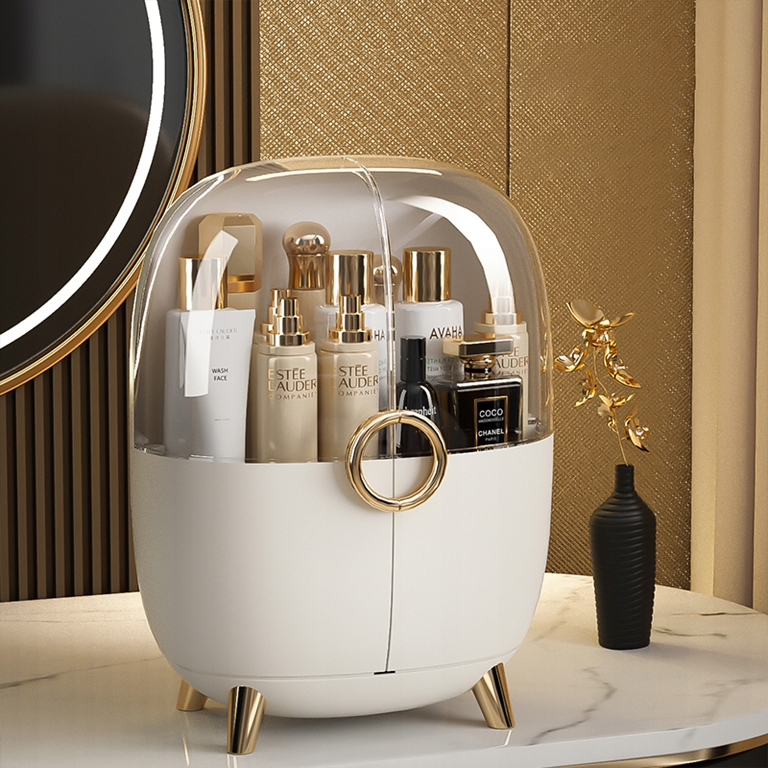 Pożegnaj się z niechlujnymi blatami do makijażu na dobre! Organizer na kosmetyki Eve to ekskluzywny i stylowy sposób na przechowywanie kosmetyków i produktów kosmetycznych, dzięki czemu łatwo i bezproblemowo znajdziesz to, czego potrzebujesz. Uporządkuj swoją toaletkę dzięki przyciągającej wzrok akrylowej szkatułce i przygotuj się na codzienną rutynę w mgnieniu oka. Dzięki eleganckiemu wyglądowi już nigdy nie poczujesz się, jakbyś utknęła w chaotycznym bałaganie kosmetycznym!