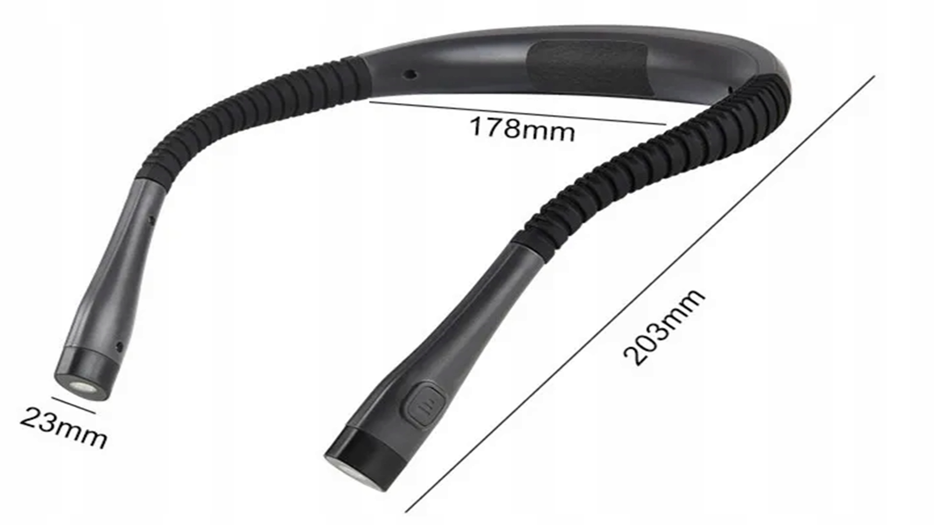 Ramiona lampki zostały starannie wykończone z miękkiego i elastycznego materiału (silikonu), co umożliwia łatwe dostosowanie jej pod dowolnym kątem. Co więcej, dzięki niewielkim rozmiarom, bezproblemowo zabierzesz ją ze sobą wszędzie tam, gdzie będzie potrzebna. Jej lekkość sprawi, że szybko zapomnisz, że masz ją na szyi. Jest nie tylko przyjemna w dotyku, ale również wyjątkowo komfortowa w noszeniu!