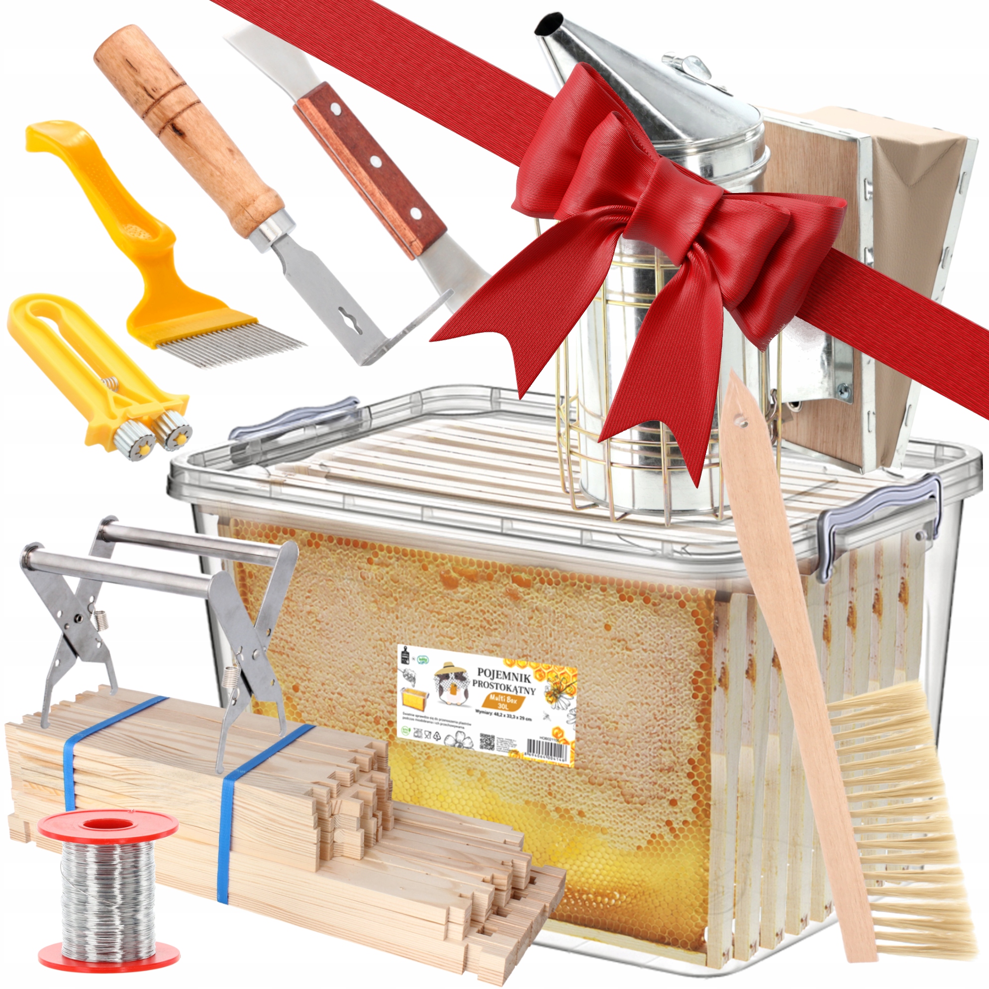 Zestaw startowy dla młodego pszczelarza oraz dla tych bardziej doświadczonych pragnących wymienić swoje narzędzia na nowe. Zestaw zawiera aż 10 elementów, które są niezbędne przy pracy w swoich pasiekach.