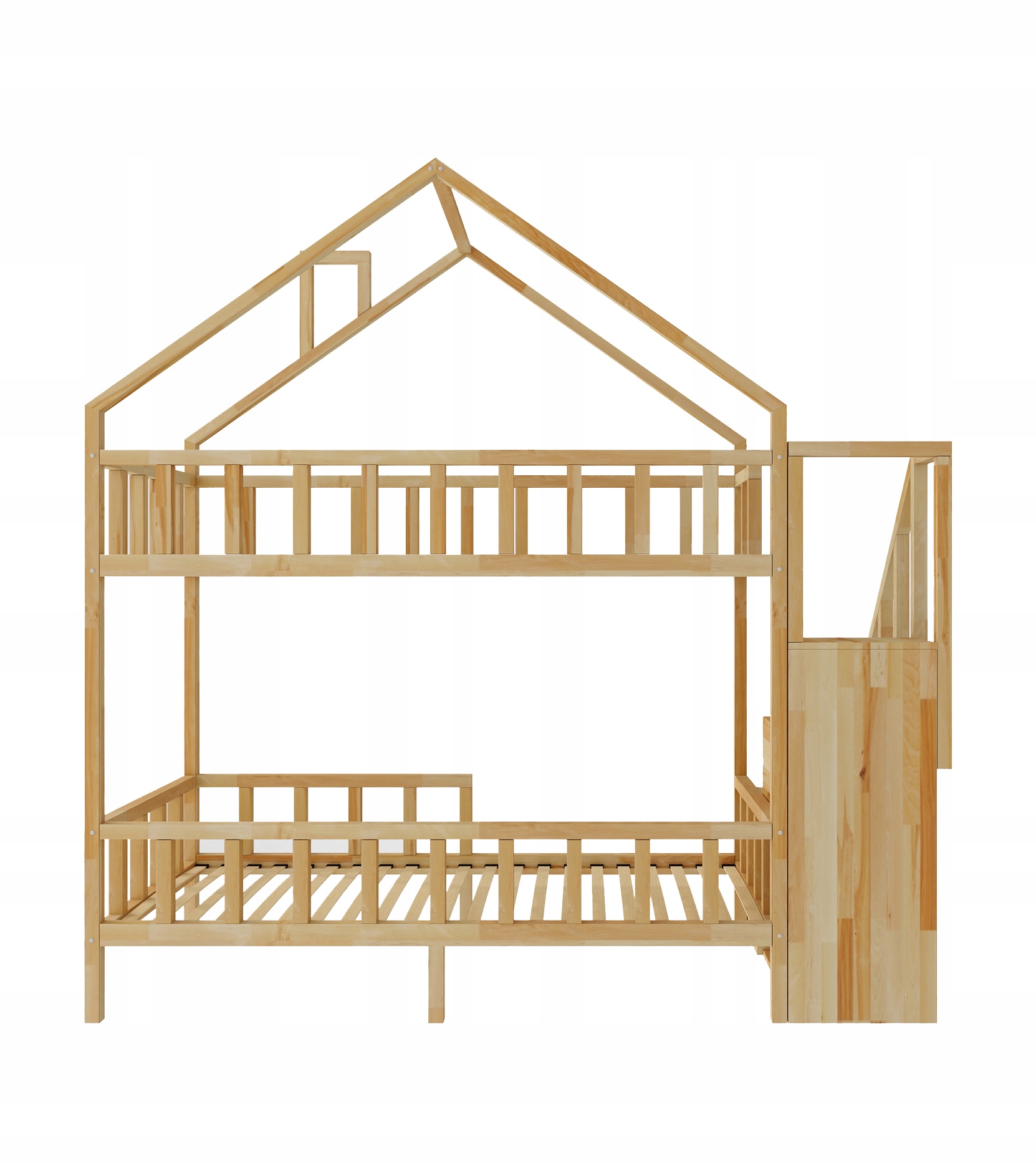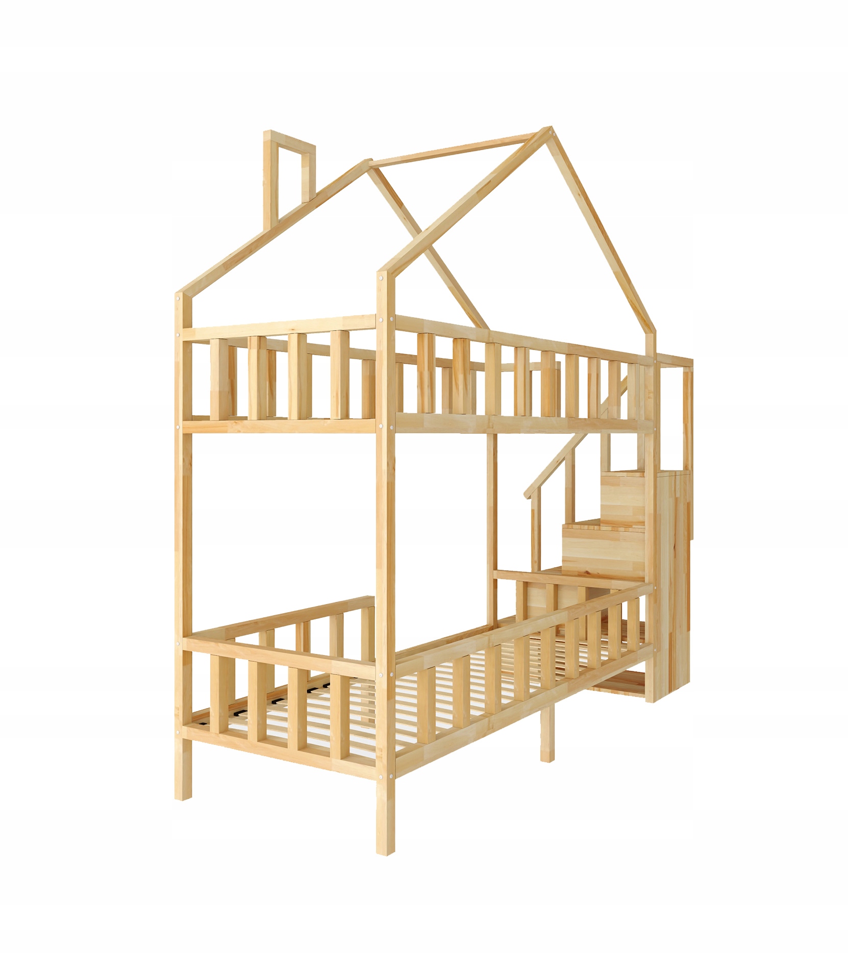 To produkt który powstał na potrzeby osób, dla których bezpieczeństwo, solidność, trwałość wykonania oraz praktyczność są cechami najważniejszymi jakimi powinno charakteryzować się łóżko dziecięce. Łóżko piętrowe - wykonane jest z naturalnego tworzywa - sosny. Sprawdza się idealnie w małych pomieszczeniach. Dzięki swojej budowie sprawia, że dzieci mają więcej miejsca na zabawę.