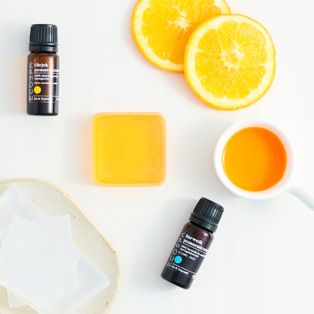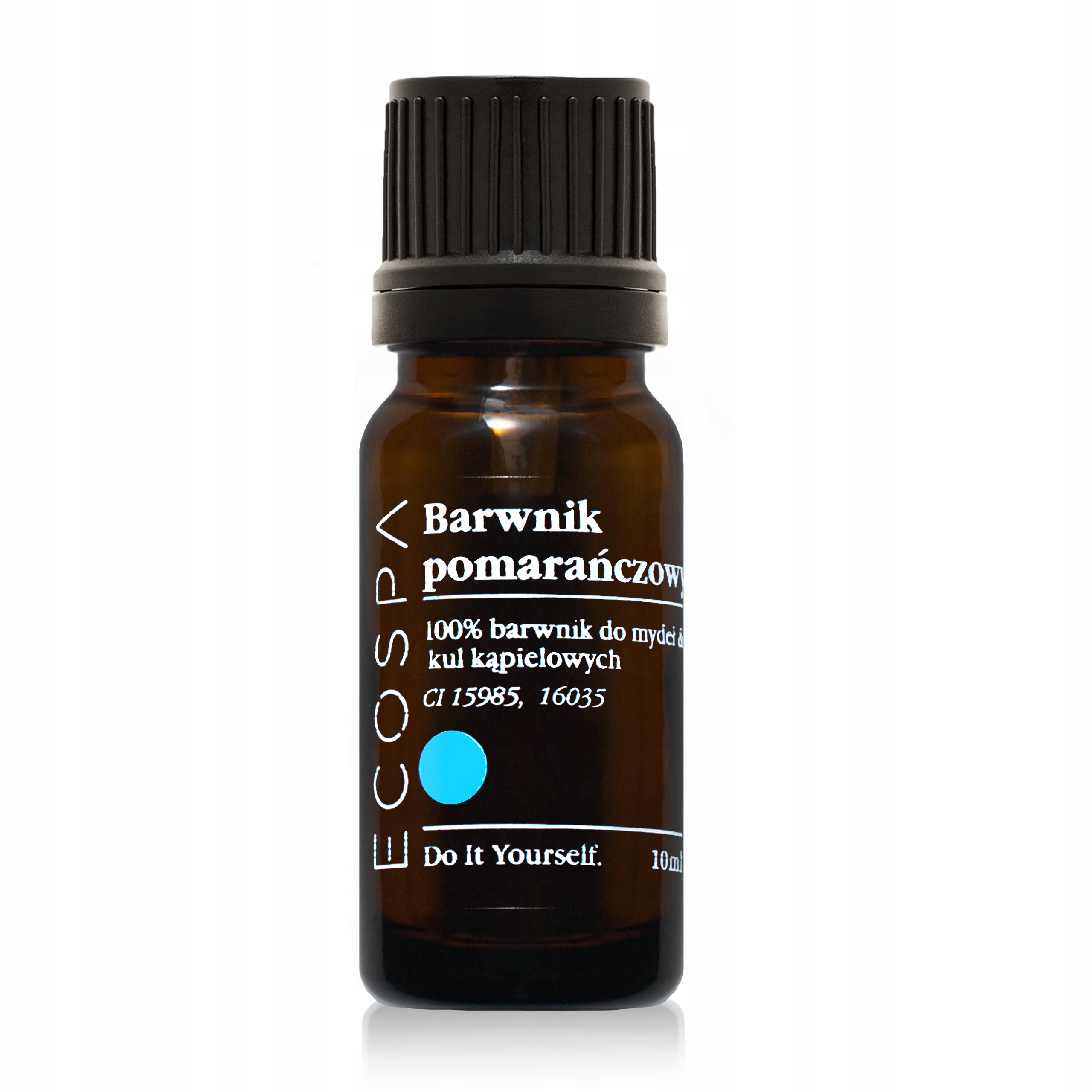 Barwnik pomarańczowy z oferty ECOSPA jest dostępny w szklanej butelce z kroplomierzem, dzięki któremu można łatwo odmierzyć odpowiednią ilość barwnika.