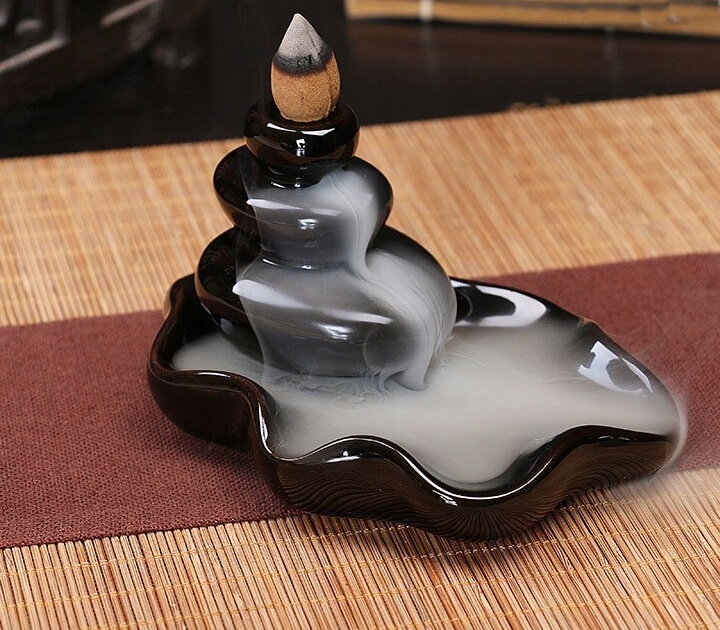 Kominki Backflow to rewolucyjne produkty w kategorii kadzidełek.Dym z kadzidła jest nieco cięższy od powietrza i opada bardzo powoli. Kominek zamienia ten efekt w prawdziwą sztukę. Dym będzie spływał po żłobieniach, stopniach w dół, aby na końcu zebrać się na dnie produktu. To niesamowity efekt wizualny - jak wodospad, ale w zwolnionym tempie
