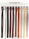 Paski posiadają metalowe zapinki oraz szlufki wykonane z metalu tylko w jasnym kolorze lub szlufki ze skóry naturalnej.