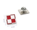 Flaga biało czerwona Polski również lakowana. Wielkość znaczka szerokość 2 cm, wysokość 1,3 cm