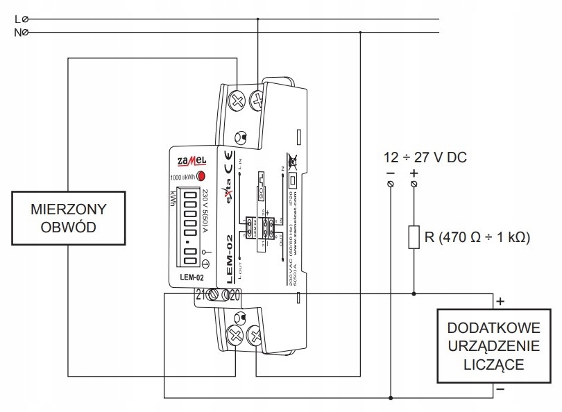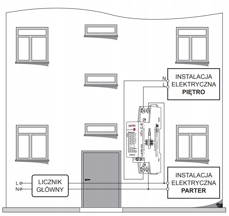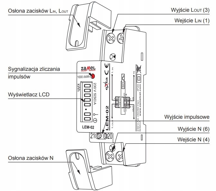 Urządzenie LEM-02 jest licznikiem energii elektrycznej, który może służyć jako podlicznik energii elektrycznej jednofazowego prądu przemiennego. Odczyt danych sygnalizuje dioda LED, a jego wartość wskazuje wyświetlacz LCD. Licznik wyposażony jest w wyjście impulsowe umożliwiające podłączenie dodatkowego urządzenia zliczającego. W celu zabezpieczenia urządzenia przed nielegalnym poborem prądu LEM-02 posiada plastikowe osłony na zaciski, z możliwością zaplombowania.