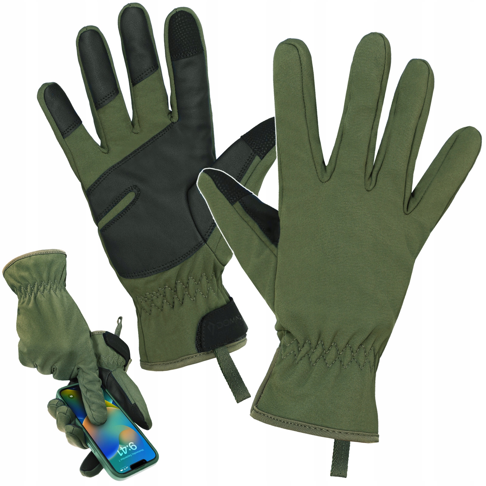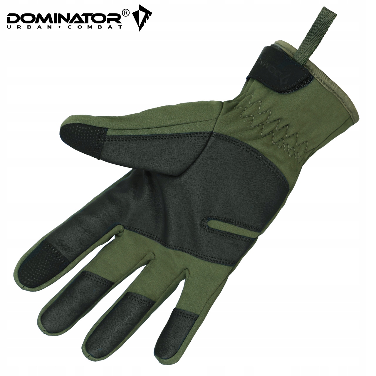 UWAGA! Przedmiotem oferty są Rękawiczki Taktyczne marki Dominator UC w kolorze Oliv/Black. Pozostałe elementy służą wizualizacji funkcjonalności.