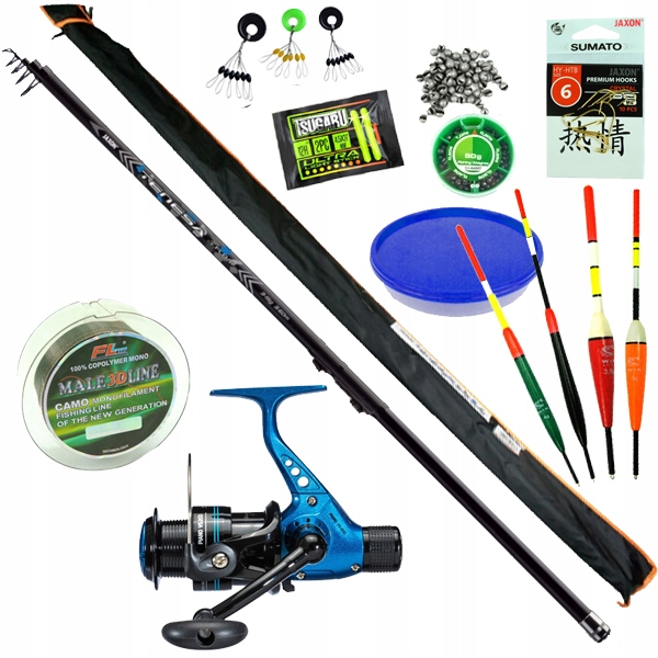 BOLONKA TENESA Tele Поплавок 3,30 м в сочетании с катушкой Jaxon PIANO VS200 и леской FL Male 3D Camo отличное плавательное соединение.