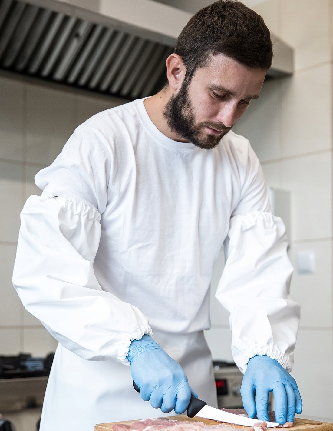 Narękawki wykonane są z wodoochronnej tkaniny Plavitex odpornej na tłuszcze, enzymy i soki trawienne.