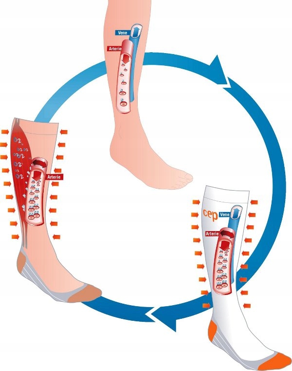 Dzięki skarpetom kompresyjnym CEP 4.0 twoje bieganie nabierze zupełnie nowego wymiaru, a samopoczucie będzie dobre jak nigdy dotąd. Skarpety kompresyjne CEP nie tylko sprawią, że będziesz osiągać lepsze wyniki, ale przede wszystkim istotnie przyspieszą proces regeneracji przed i po wysiłku. Jest to możliwe dzięki zastosowaniu stopniowego ucisku (graduated compression), który poprawia krążenie w twoich nogach. Takie rozwiązanie sprawia, że twoje mięśnie otrzymują więcej tlenu podczas wysiłku, a tym samym szybciej usuwane są toksyczne resztki przemiany materii, co skutecznie ogranicza powstawanie tzw. zakwasów i bóli mięśniowych. Skarpety kompresyjne CEP to nie tylko lepsze krążenie, profilaktyka przeciw żylakowa, ale także doskonała techniczne skarpety do wszelkich dziedzin sportu. Wyściełana, bezszwowa stopka ogranicza powstawanie pęcherzy, otarć i odcisków.