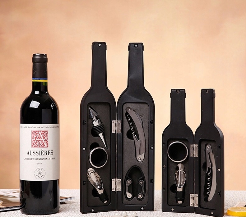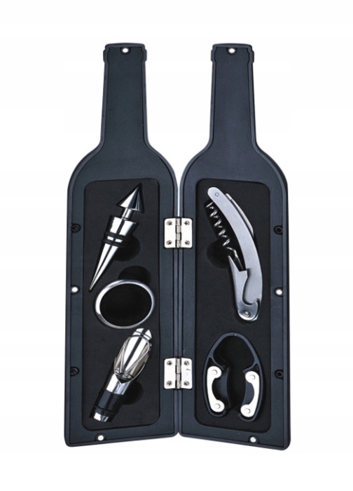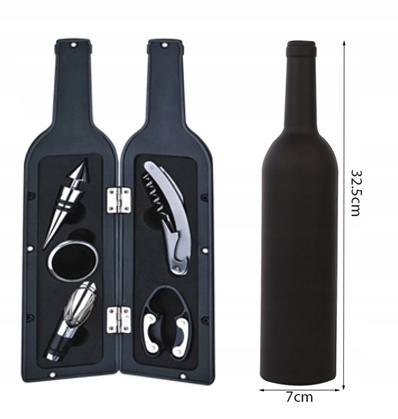 Akcesoria znajdują się w etui w kształcie butelki, którą to można przechowywać w barku.