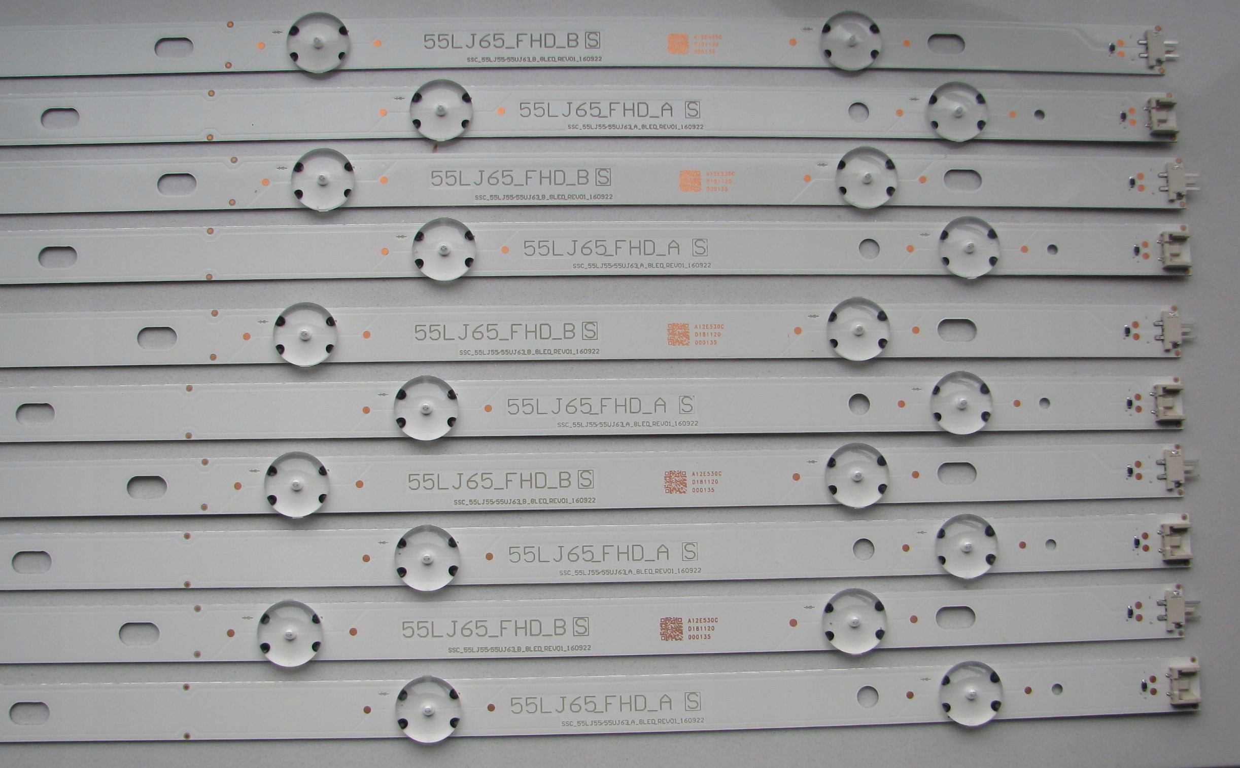 Oryginalne podświetlanie matrycy / listwy LED 55UJ63_UHD_A / 55UJ63_UHD_B (55LJ55_FHD_A i 55LJ55FHD_B / SSC_55LJ55/55UJ63 A i B 8LED REV01) stosowane w wielu modelach telewizorów LG. Listwy NOWE, wysokiej jakości - 100% sprawne, wykonane na aluminium (lepiej odprowadzają ciepło). Dodatkowo wszystkie listwy podklejone są specjalna taśmą termo-przepuszczalna firmy 3M żeby dobrze dolegały do obudowy i odprowadzały ciepło.