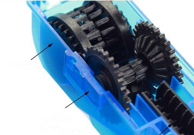 Przyrząd do czyszczenia łańcucha bez jego zdejmowania z roweru.