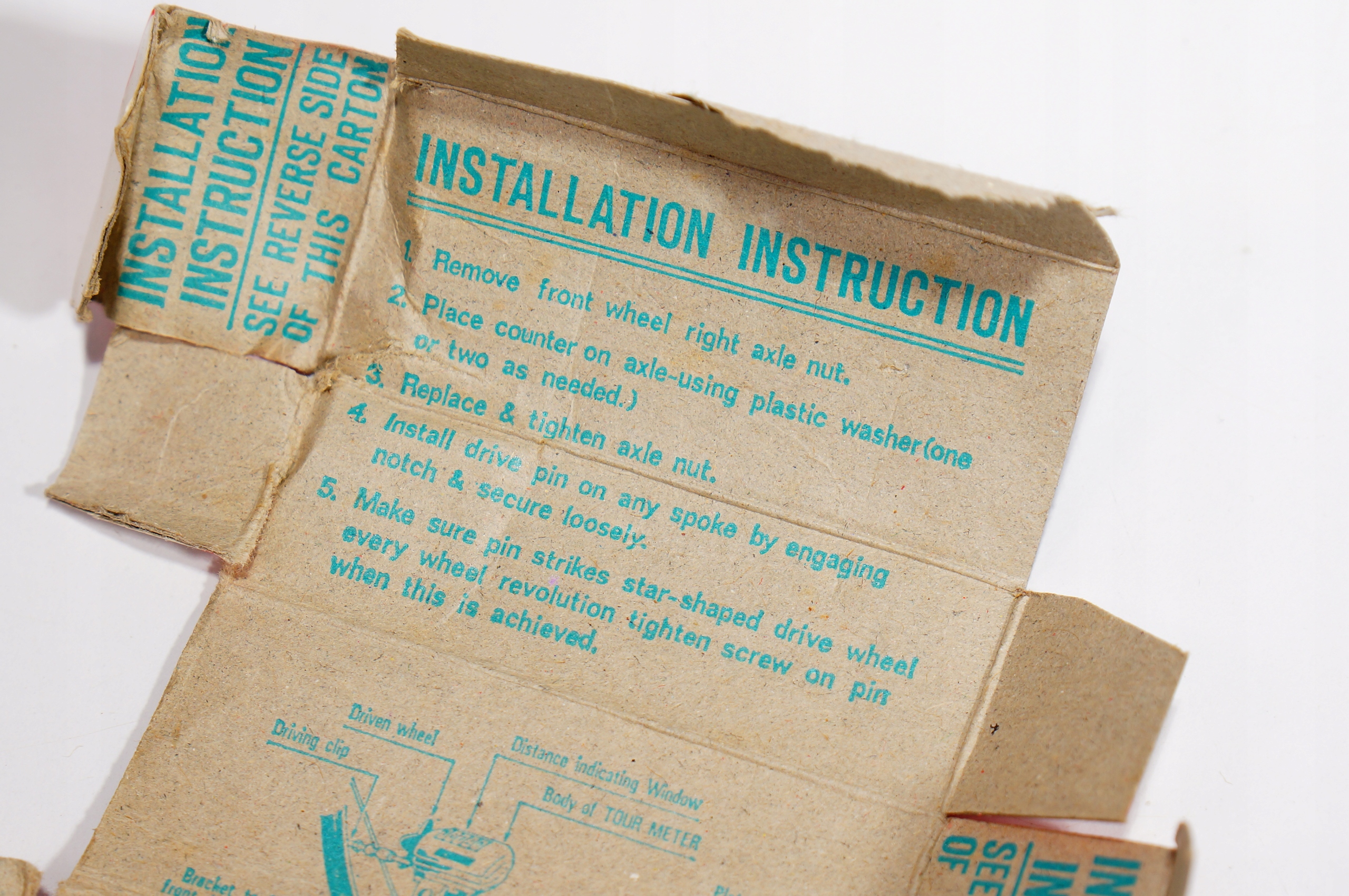 Очень простой монтаж счетчик монтируется колеса (болт колеса) а на спицу надевается металлический элемент, который при вращении колеса зацепляется за стойку счетчика, заставляя ее вращаться