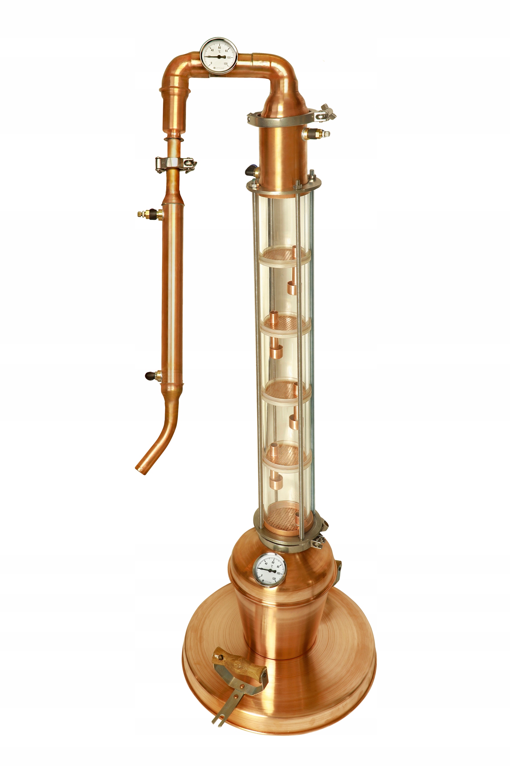 Колонки построена модульно. Применение стеклянных трубок обеспечивает полный просмотр ходе процесса, а в особенности затопления полок, что обеспечивает потрясающий вид во время процесса дистилляции. Означает то, что весь процесс происходит на глазах у оператора. Полки сетчатых, которые были применены в данной модели характеризуются очень высокой эффективностью. Каждая полка оснащена syfonowany сплав.