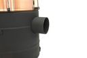 В верхней части емкости расположен венок водный, исполняющий функцию уплотнения с крышкой, к которой можно подключить с помощью пряжки Tri-Clamp столбец półkową или чашу водный спасибо почему мы получаем два разных destylatory.