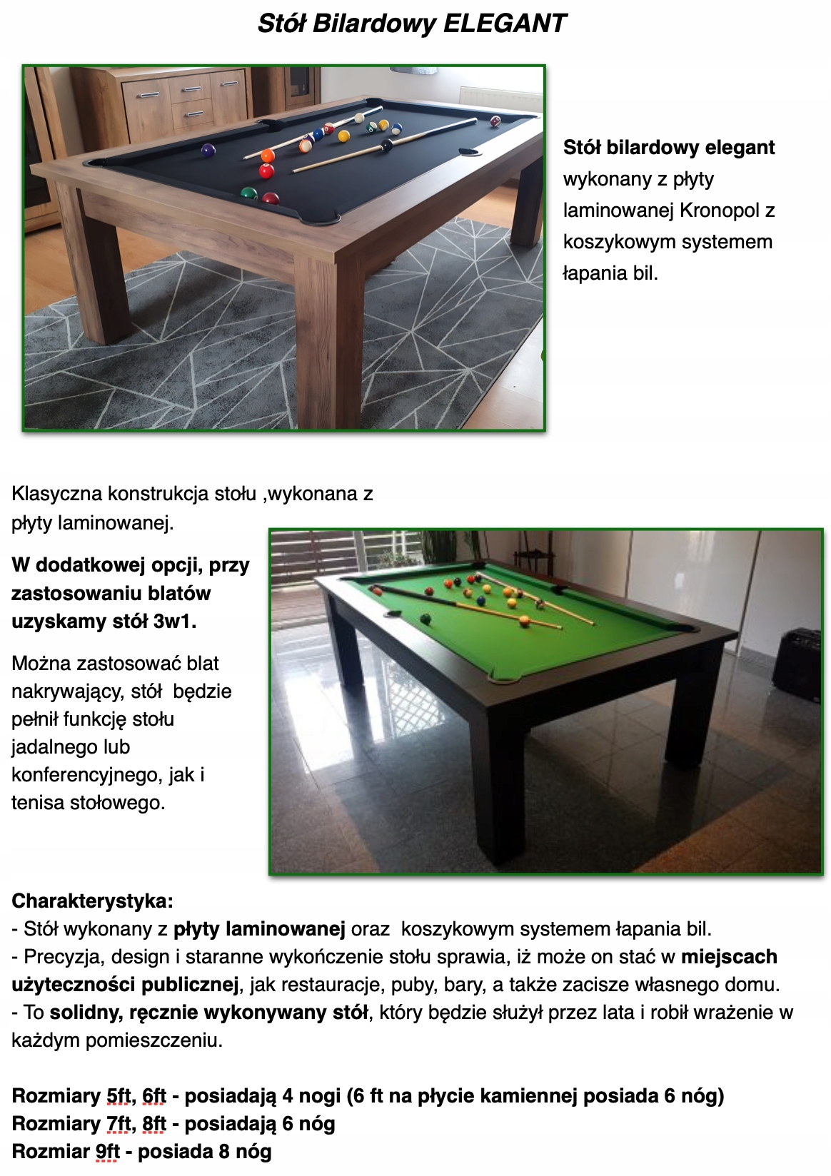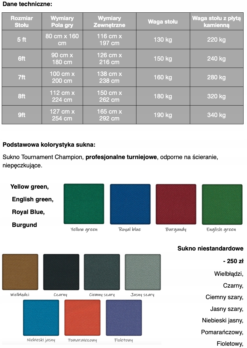 Размер стола 9 футов