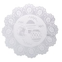 Zestaw obejmuje : wielkanocna serwetka dekoracyjna na koszyczek. Serwetka osłania żywność w koszyczku oraz pełni formę świątecznej dekoracji. Ażurowe wzory nawiązują to tradycyjnych motywów. Duża serwetka o średnicy 40 cm.