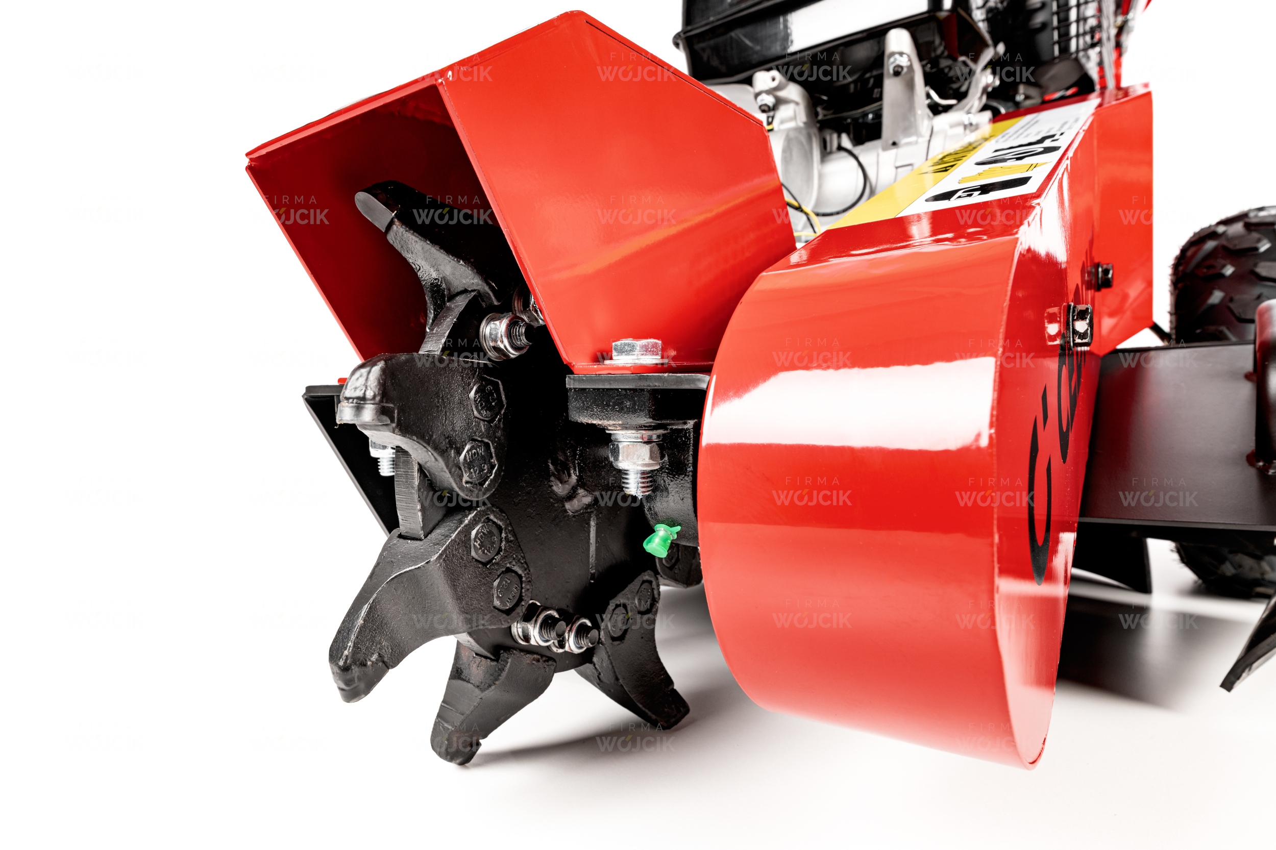 Wysoka wydajność jest zasługą silnika benzynowego LONCIN G420F o mocy 15 KM. Dzięki niemu tarcza wyposażona w 9 wytrzymałych zębów w krótkim czasie tnie pniaki na drobne wióry.