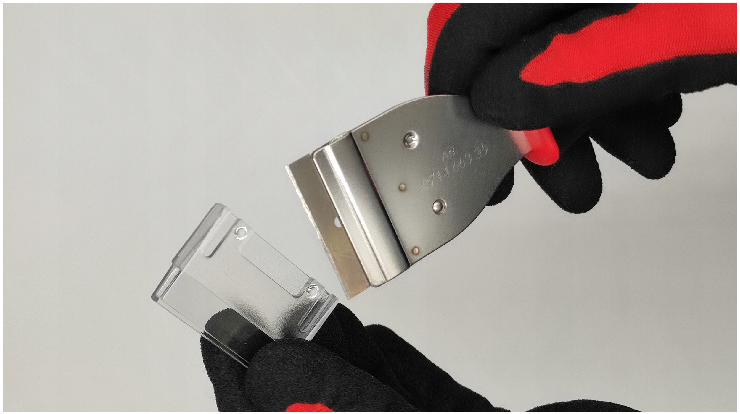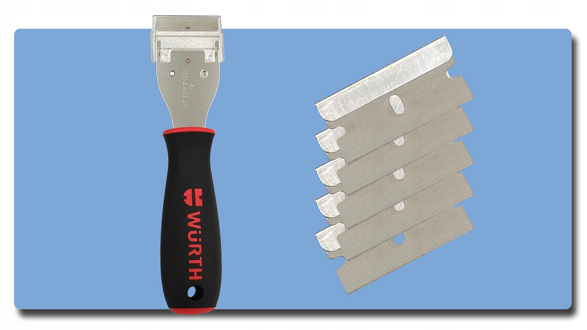Doskonałe narzędzie do usuwania nalepek z szyb samochodowych, resztek kleju, farb, uszczelniaczy, silikonów.