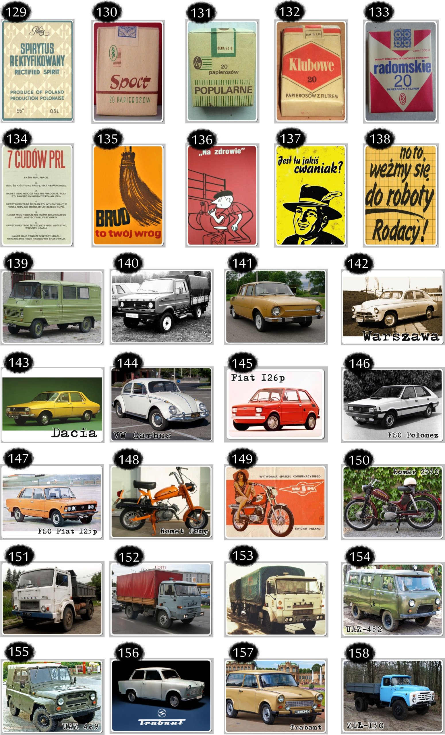 ZESTAW 20 sztuk foto-tabliczek (replik) o wymiarach 15 cm x 10 cm z motywami PRL.