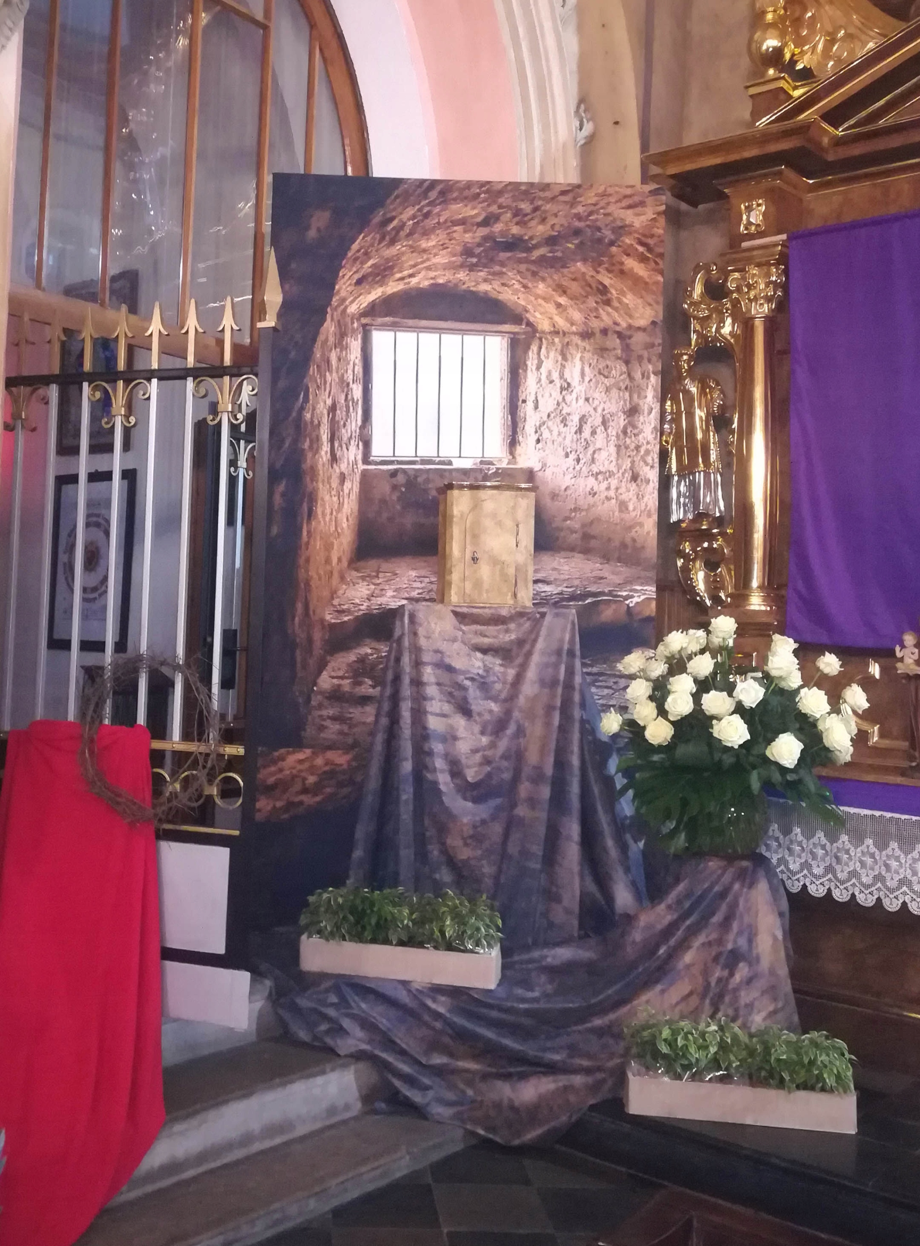Zestaw do Grobu Pańskiego Tkanina razem ze stelażem w rozmiarze 300x230cm.