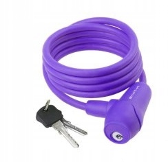 Zamknięcie o długości 1500 mm, grubość 8 mm, linka stalowa zabezpieczona powłoką silikonową, kolor fioletowy, na kluczyk, opakowanie zawieszka