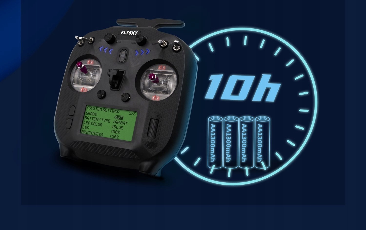 FS-ST8 SR8 może być zasilany bateriami AA/2S lub akumulatorami NiMH 1300 mAh, charakteryzującymi się niskim poborem energii i pracą do 10 godzin na jednym ładowaniu. Ciesz się tym, co FlySky ma do zaoferowania. Uwaga: Baterie i akumulatory nie wchodzą w skład zestawu i należy je dokupić osobno.