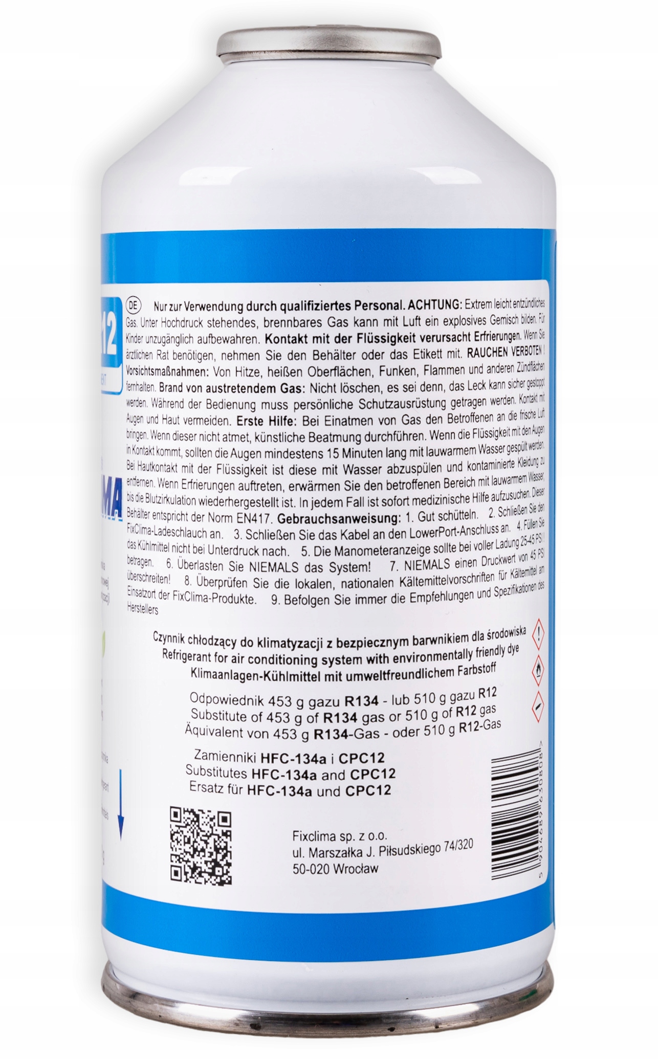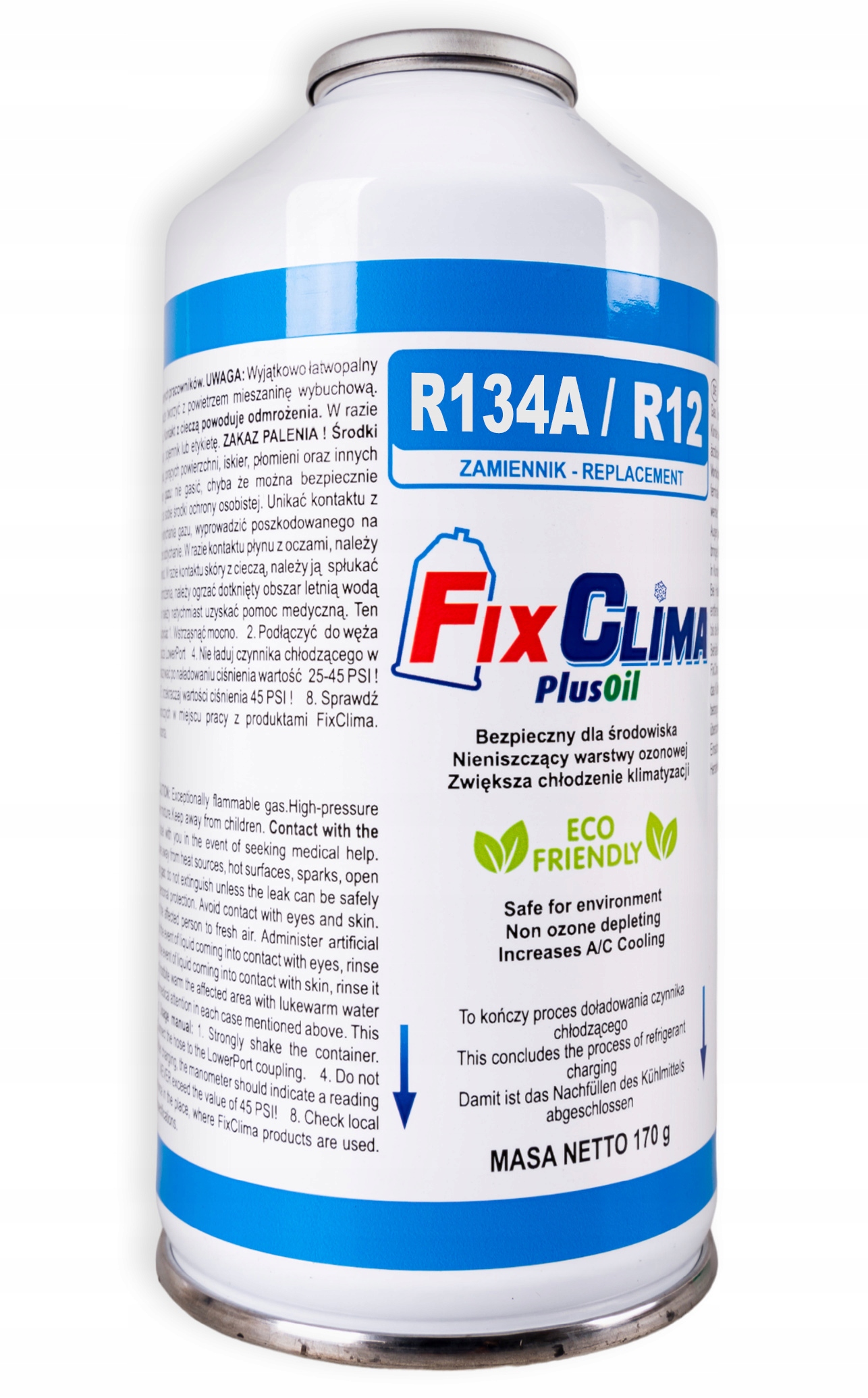 В одной банке содержится 170 грамм фактора FixClima, что соответствует 453 граммам предыдущего фактора R134a.
