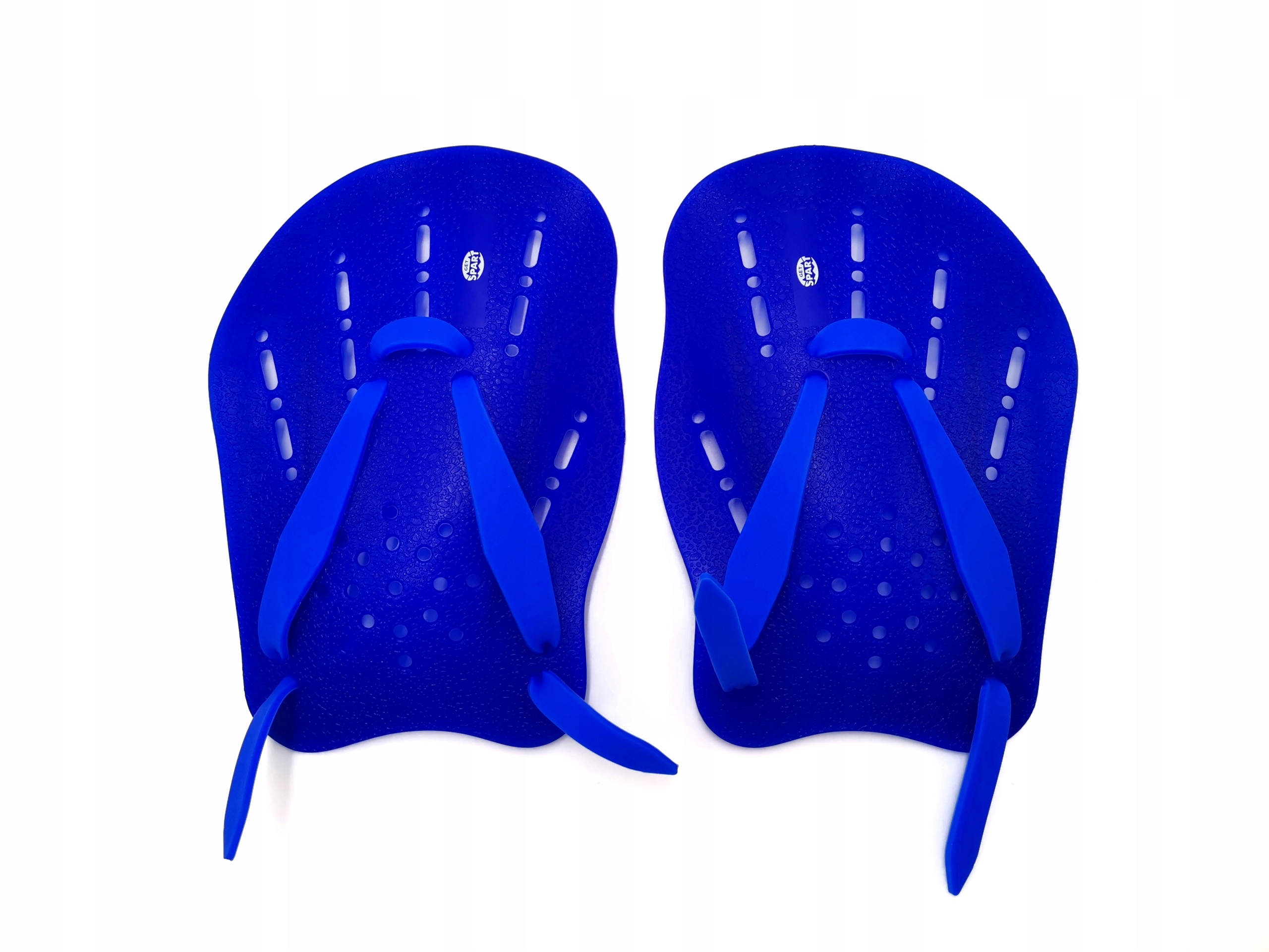 Wiosełka treningowe do pływania, wykonane z tworzywa sztucznego z silikonowymi paskami mocującymi.
