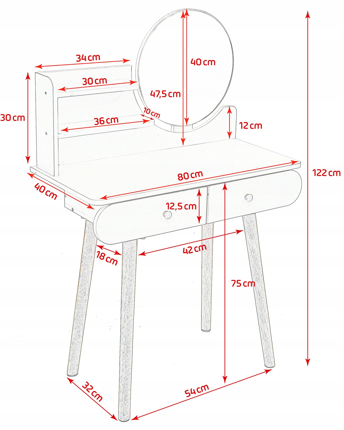 Мебель идеально подходит для спальни как практическое место для выполнения макияжа, прически, ежедневных процедур по уходу за кожей косметических средств, а также для написания письма или хранения множества различных мелочей.