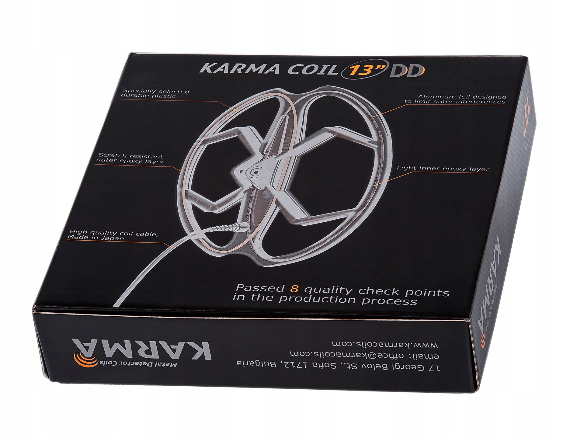 Dzięki cewce możliwe jest uzyskanie większego pola przemiatania oraz zasięgu zwiększonego o nawet 30%, w zależności od rodzaju wykrywacza. W sondzie Karma zastosowano japoński kabel wysokiej jakości, zapewniający większą stabilność w trakcie pracy na obszarze, na którym występują zakłócenia elektromagnetyczne. Cewkę wypełniono żywicą epoksydową.
