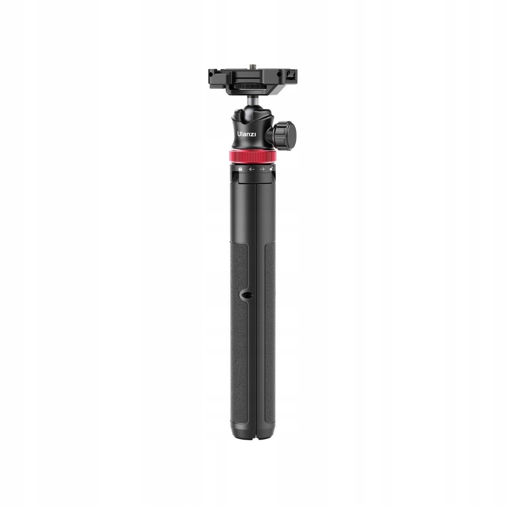 Ulanzi MT-44 to teleskopowy statyw stołowy z głowicą kulową, wykonany z tworzywa ABS. Płytka na aparat z gwintem 1/4'', którą jest zakończona głowica, może zostać w kilka sekund przekształcona w zaciskowy uchwyt na smartfona. MT-44 łączy w sobie funkcjonalność tradycyjnego tripoda oraz rozsuwanego wysięgnika selfie o bardzo dużym zasięgu. Dzięki temu ze statywu mogą z powodzeniem korzystać nie tylko fotografowie, ale także vlogerzy i twórcy internetowi. Regulowany sprężynowo zacisk do telefonu oferuje zakres od 60 do 80 mm. Po przekształceniu głowicy w uchwyt na smartfona do naszej dyspozycji jest też dodatkowe mocowanie typu zimna stopka, które możemy wykorzystać podczas pracy z niewielką lampą LED czy mikrofonem zewnętrznym.