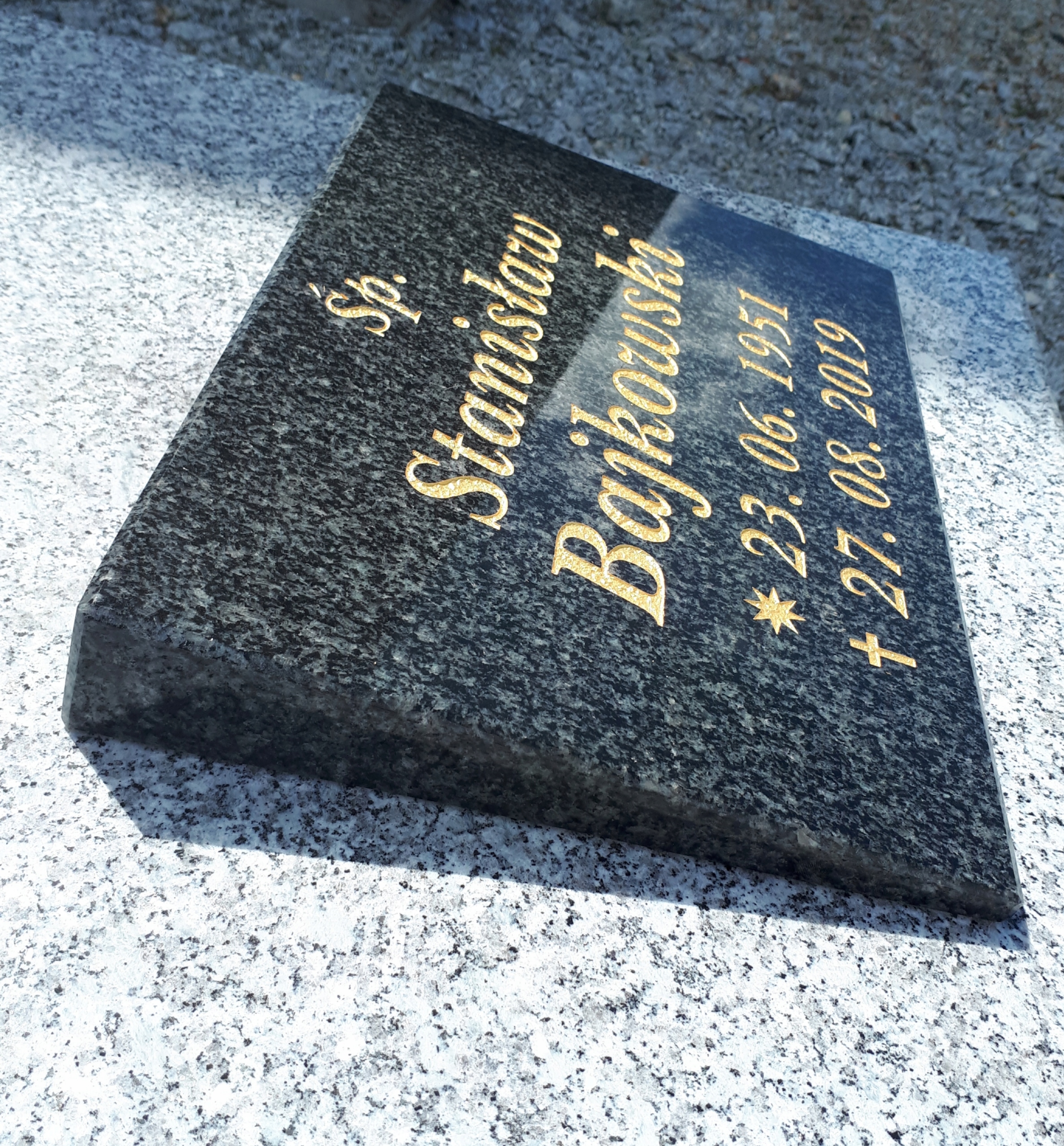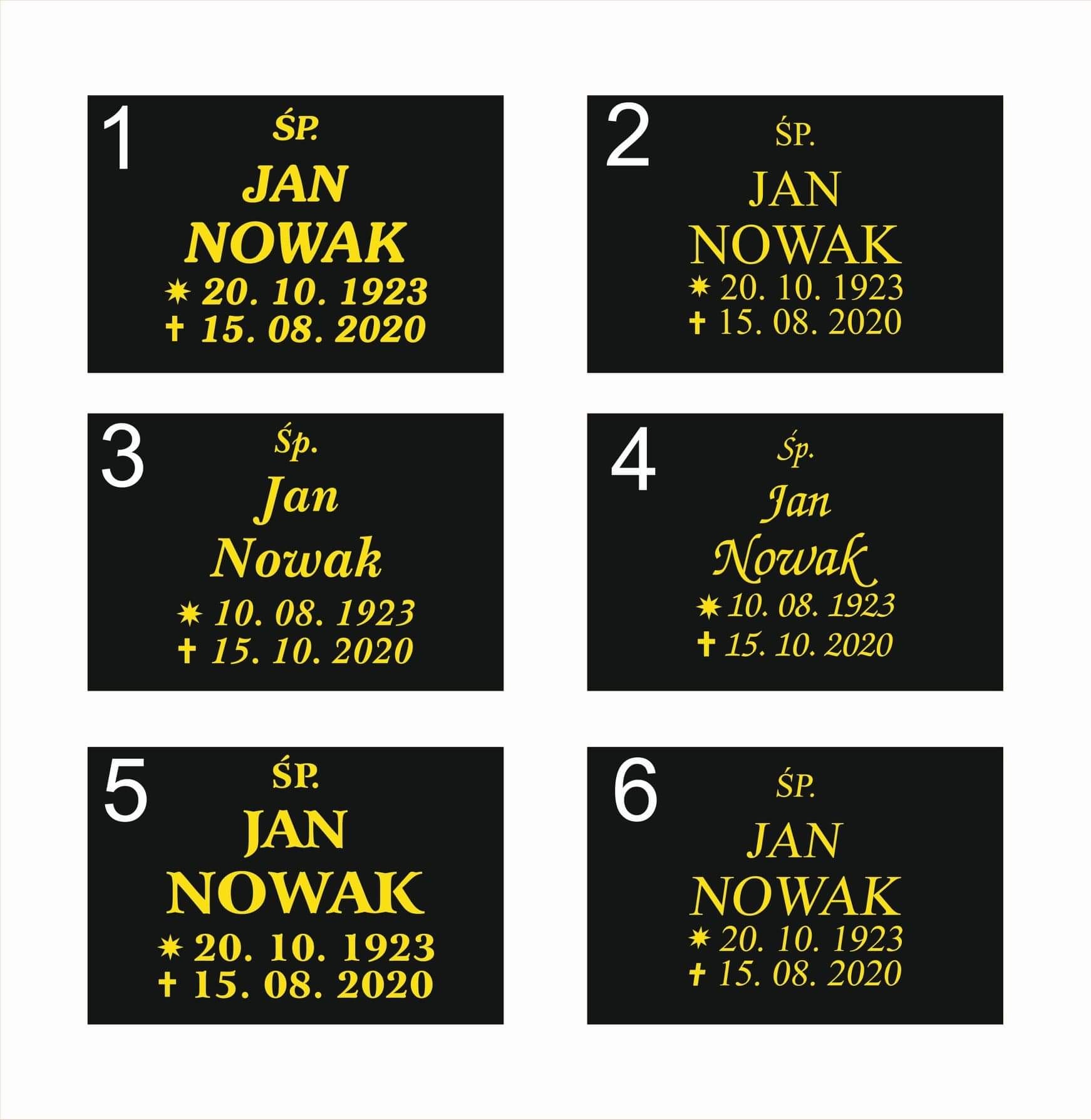 Po zakupie należy podać dokładny napis, który ma być wygrawerowany, łącznie z skrótami ŚP., ur., zm., gwiazdka, krzyżyk i ewentualny napis na dole. Następnie jest robiony projekt napisów do akceptacji.
