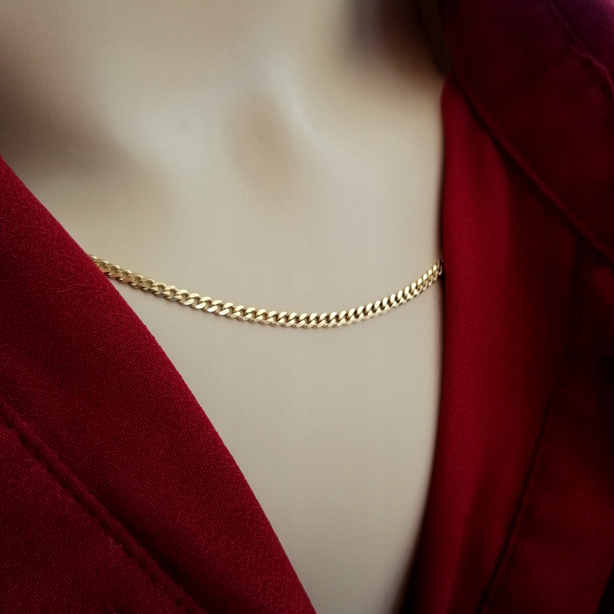 Olśniewający blask, gładkość i wysoką trwałość łańcuszka osiągnięto dzięki zastosowaniu złocenia 14 karatowym złotem oraz ręcznemu polerowaniu.