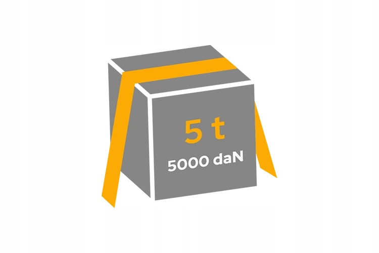 Siła napięcia wynosi 300 daN co oznacza, że pas dociska ładunek z siłą równoważną 300 kg, skutecznie zabezpieczając go przed przesuwaniem podczas transportu. Jest to kluczowy parametr pasa transportowego określający siłę docisku, jaką można uzyskać przy standardowym napięciu pasa za pomocą napinacza (grzechotki). Parametr ten jest szczególnie istotny przy planowaniu mocowania ładunku, ponieważ informuje o rzeczywistej sile unieruchamiającej ładunek przy zastosowaniu standardowego napięcia pasa, co zwiększa bezpieczeństwo ładunku w transporcie.