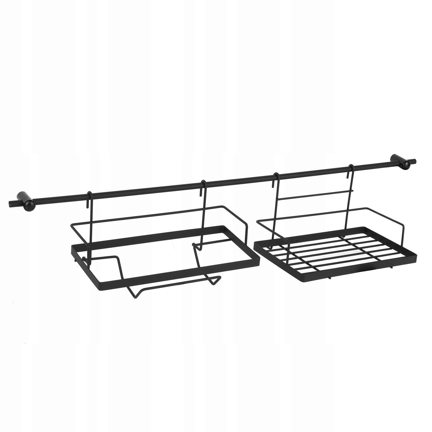 Dwa czarne relingi kuchenne Tadar 76 cm z akcesoriami – zestaw 16 elementów