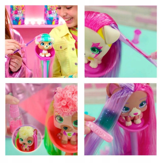 VIP Pets powraca z nową ekskluzywną serią Color Boost Pieski do stylizacji z ponad 12 nowymi figurkami do zebrania! Tym razem z możliwością zafarbowania im włosów. Mają nową butelkę szamponu. Wystarczy tylko przekręcić zakrętkę butelki do momentu ukazania się pieska. Możliwość odkrycia 9 niespodzianek. Każdy z piesków posiada inny zestaw akcesoriów oraz farbki do stylizacji fryzur. Dodatkowo do każdego zestawu dołączony jest mini poradnik, który krok po kroku przeprowadzi przez proces tworzenia wystrzałowej fryzury!
